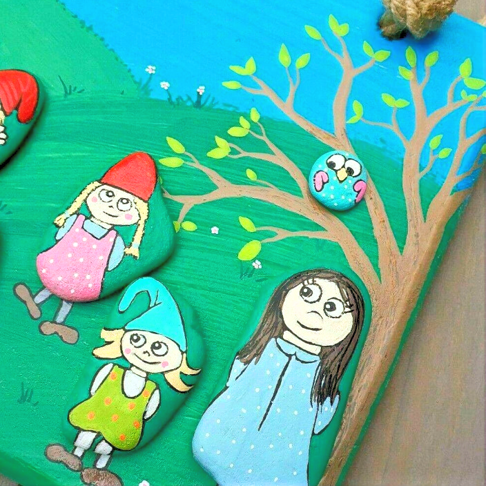 Deko-Schild, Zwerge, Tiere, Wald, Aufschrift nach Wunsch, 20x30 cm, Holz